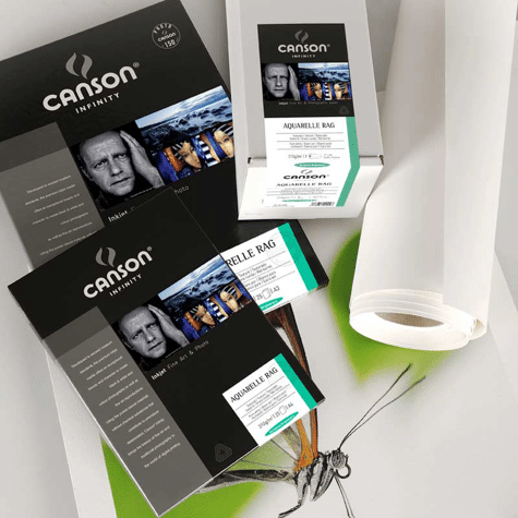 Canson® Infinity Aquarelle Rag biedt een uniek en ongeëvenaard karakter aan de fijne kunst-reproductie van traditionele kunst en foto's.