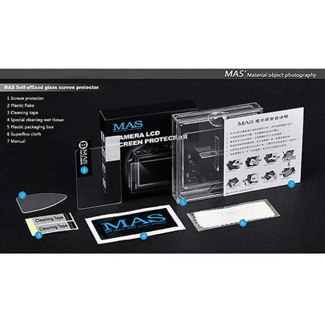 MAS LCD Screen Protector  is een glazen screenprotector met een dikte van slechts 0.7mm. De screenprotector is ontworpen om het beeldscherm van uw camera te beschermen tegen krassen en beschadigingen.