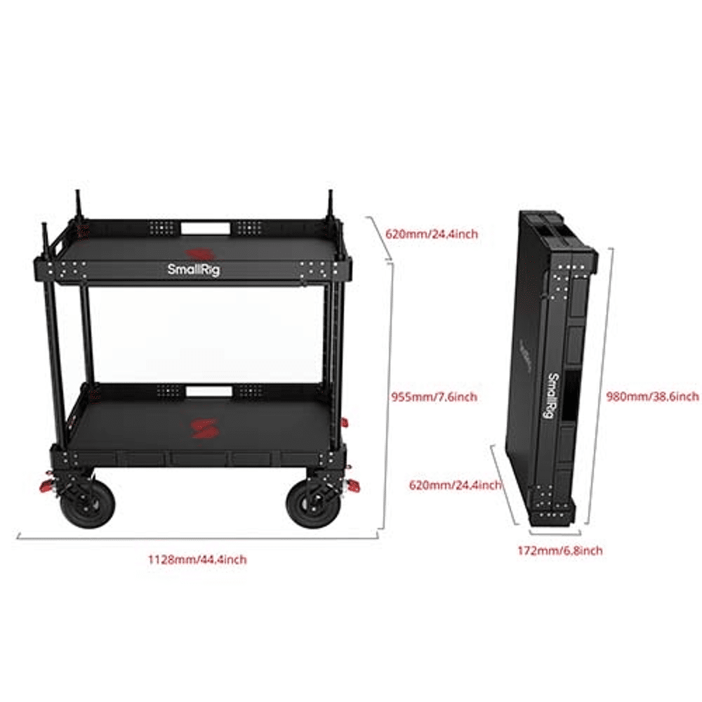 De SmallRig MD5991 36" Video Production Camera Cart Lite is een professionele, mobiele werkplek voor filmmakers en content creators die snel en efficiënt willen werken op set. De cart is ontworpen voor intensief gebruik en combineert een robuuste constructie met een lichtgewicht ontwerp uit aluminium, nylon en roestvrij staal. Dankzij het inklapbare systeem kan de cart door één persoon in ongeveer vijf minuten worden opgebouwd of ingeklapt, waarbij de hoogte in ingeklapte toestand slechts 17,3 cm bedraagt, wat transport en opslag bijzonder eenvoudig maakt.