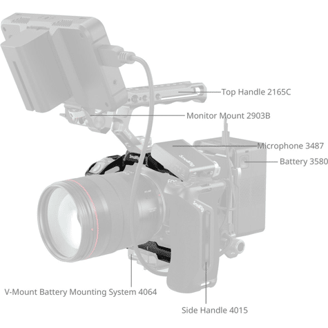Het bovendien gedeelte beschikt over ARRI-locatiegaten voor uitbreiding met accessoires zoals SmallRig-topgrepen, snelkoppelingen-topgrepen en monitorhouders.Daarnaast is er een cold-shoe mount geïntegreerd voor microfoons en verlichtingsaccessoires.