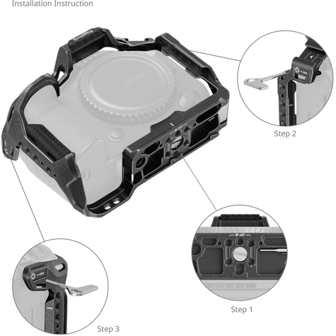 De kooi heeft standaard riemopeningen die compatibel zijn met SmallRig polsbandjes, een innovatieve riemopening voor het naar beneden hangen voor extra lensbescherming en een QD-interface die compatibel is met QD-snelkoppelingen-schouderriemen.