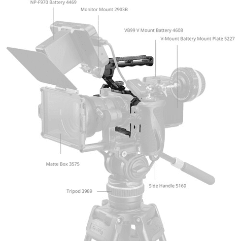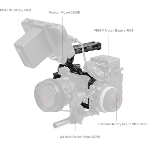 De kooi heeft talloze uitbreidingsmogelijkheden, zoals meerdere 1/4 inch-20 schroefgaten en bevestigingsgaten voor accessoires zoals handgrepen aan de zijkant. Bovendien zijn er 3/8 inch-16 ARRI-positioneringsgaten om monitorbevestigingen of een bovenhandgreep te monteren.