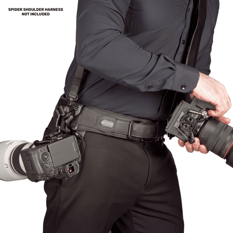 Het Spider Holster Suspension System ziet er niet alleen verfijnd uit, maar is ook ontworpen om de belasting op uw lichaam te verminderen tijdens lange fotosessies, terwijl het snelle en veilige toegang tot uw apparatuur biedt.