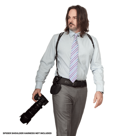 Het Spider Holster Suspension System ziet er niet alleen verfijnd uit, maar is ook ontworpen om de belasting op uw lichaam te verminderen tijdens lange fotosessies, terwijl het snelle en veilige toegang tot uw apparatuur biedt.