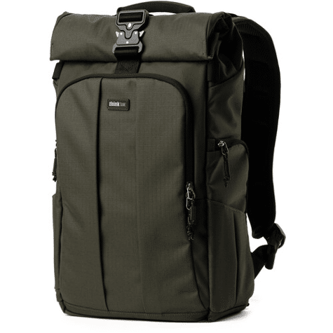 Houd je fotoapparatuur veilig, droog en beschermd in deze 22L FocusPoint Rolltop Camera Rugzak van Think Tank Photo. Je kunt een camera en twee tot drie lenzen op ...